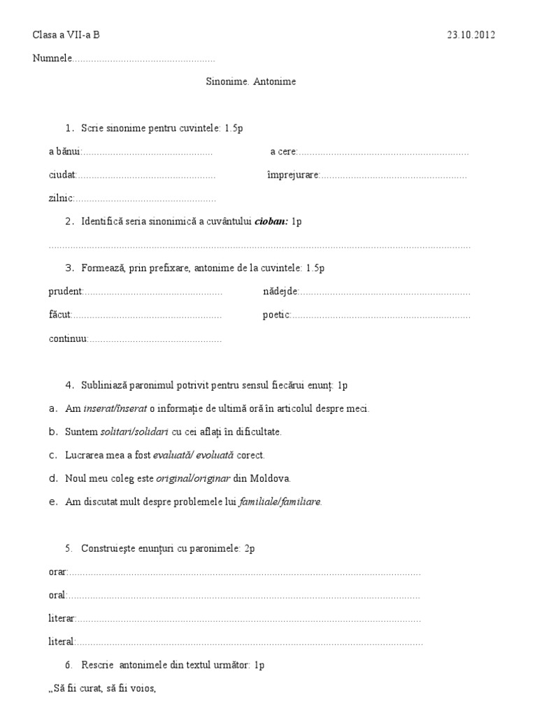 Sinonime antonime omonime paronime exercitii - mabillea.blogspot.com