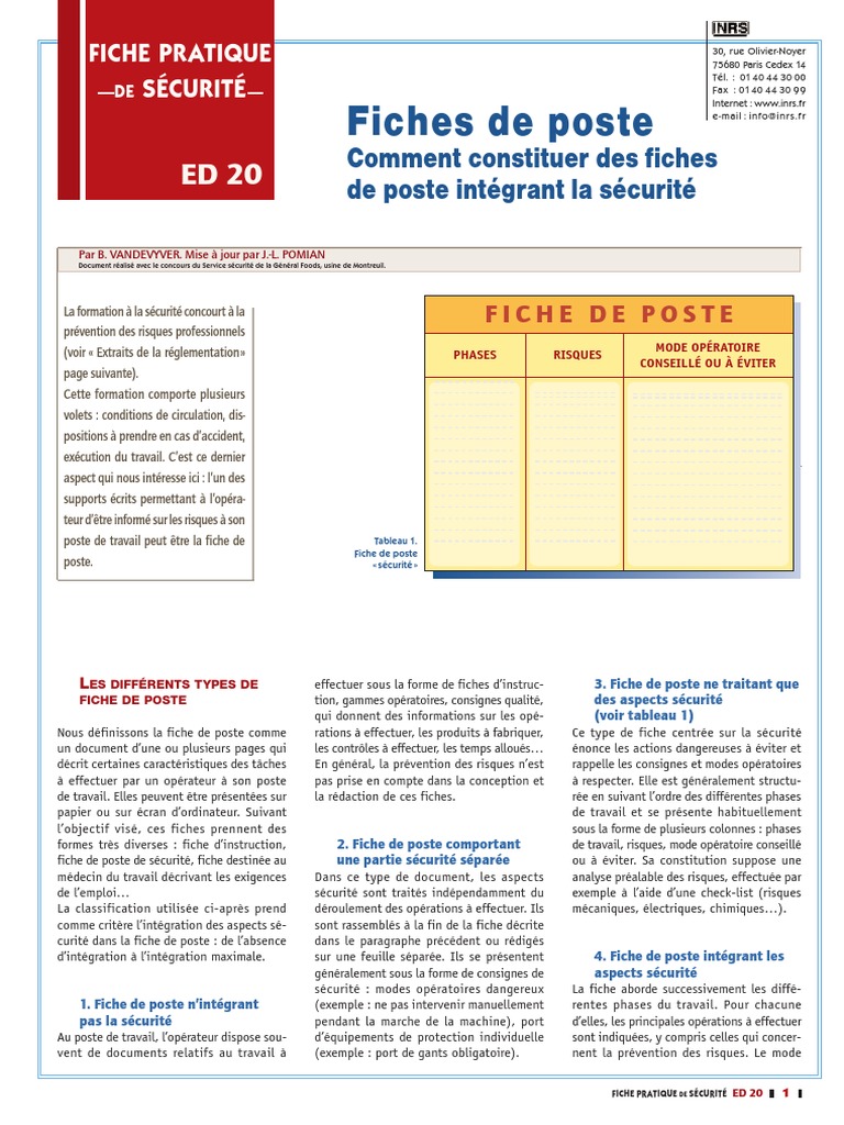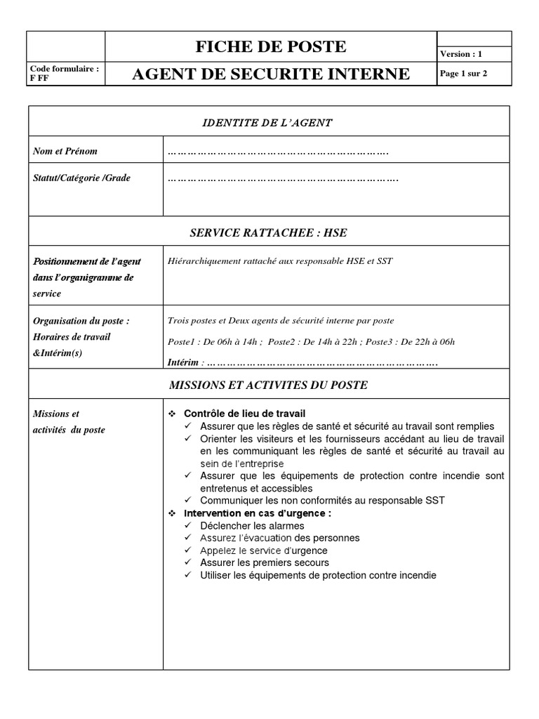 Fiche de poste securite sante securite au travail - fr.scribd.com